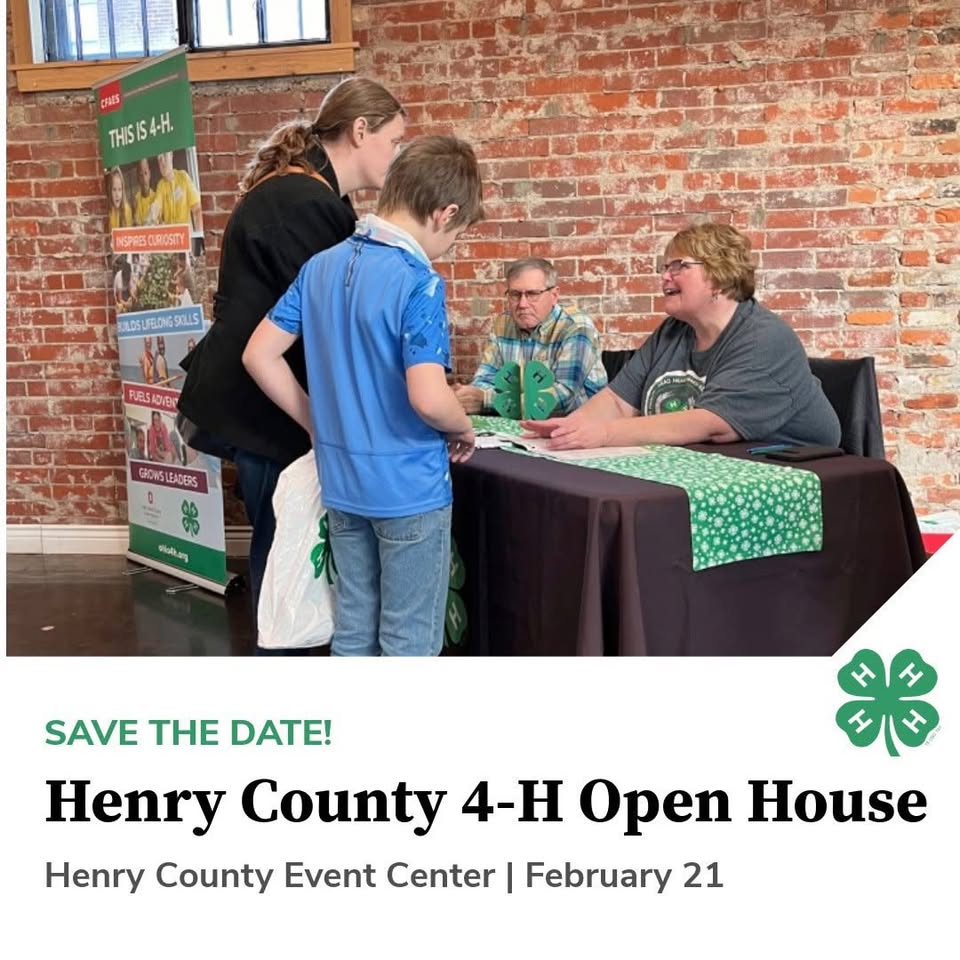 February 21, 2026, 10:00 AM–2:00 PM Henry County 4-H Open House at Henry County Fairgrounds and Event Center Clubs and Organizations, Community, Information Location: Henry County Fairgrounds & Event Center 821 South Perry Street Napoleon, OH Join us to learn what 4-H is all about! Connect with club advisors, see the great programs our kids contribute to – and have some fun! Crafts, Make-it Take-it Activities, STEM, animals and more!