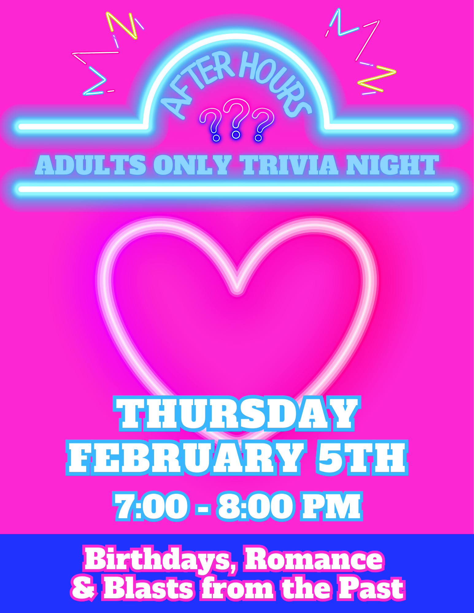 February 5, 2026, 7:00 PM–8:00 PM After Hours Adults Only Trivia Night at LC Library Clubs and Organizations, Community, Recreation and Sports Location: 124 East St Liberty Center, OH 43532 See flyer for more information