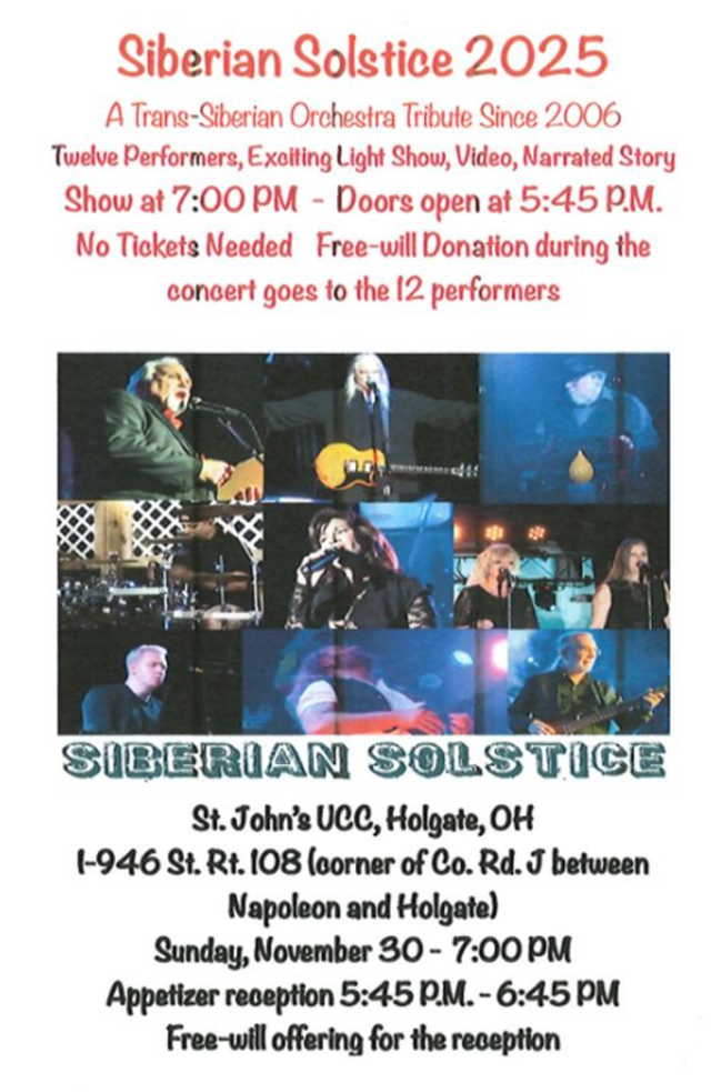 New this year: the Porches and Pews Tour! This special ticketed experience will invite guests into area homes and churches to enjoy the sights of Christmas and pick up a holiday treat along the way. Tickets may be purchased at APA Solar, Ridgeville Telephone Company, Salon 1915 and Sherwood State Bank in Archbold. (See Facebook page)
